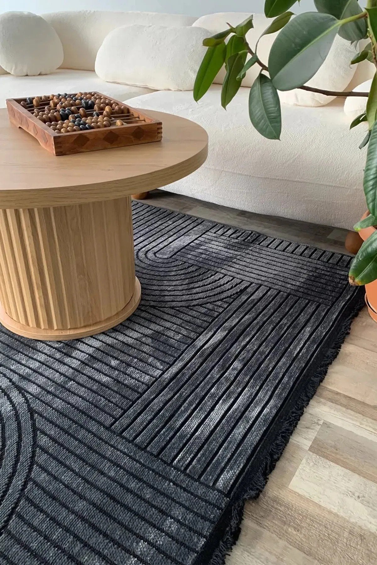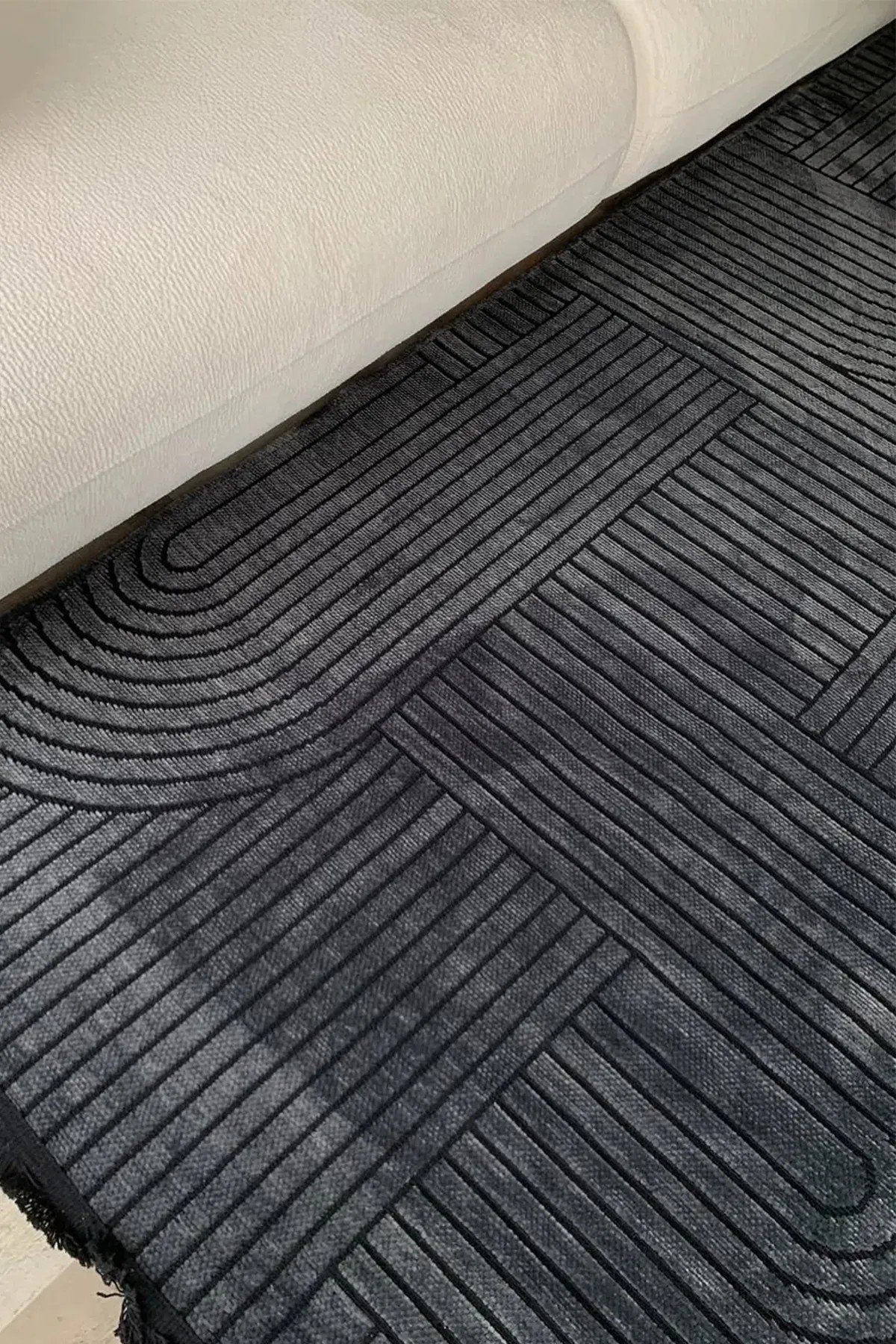 BOHEM DESEN YIKANABİLİR ANTRASİT ŞÖNİL KİLİM