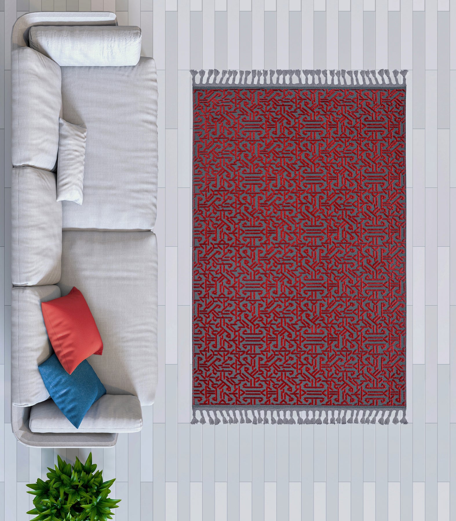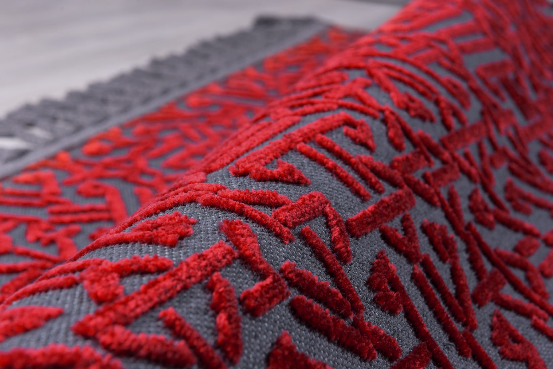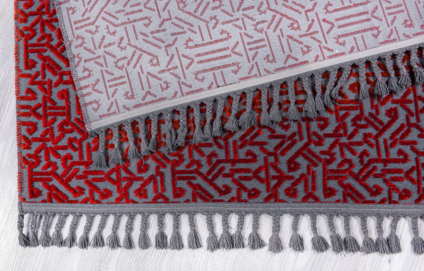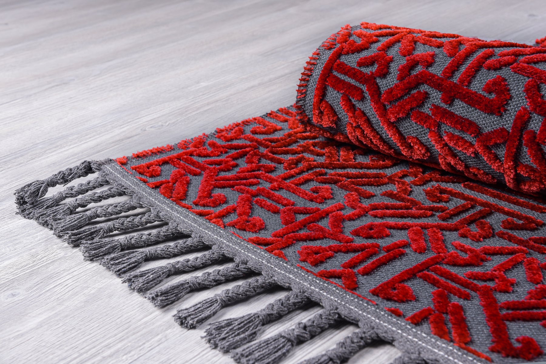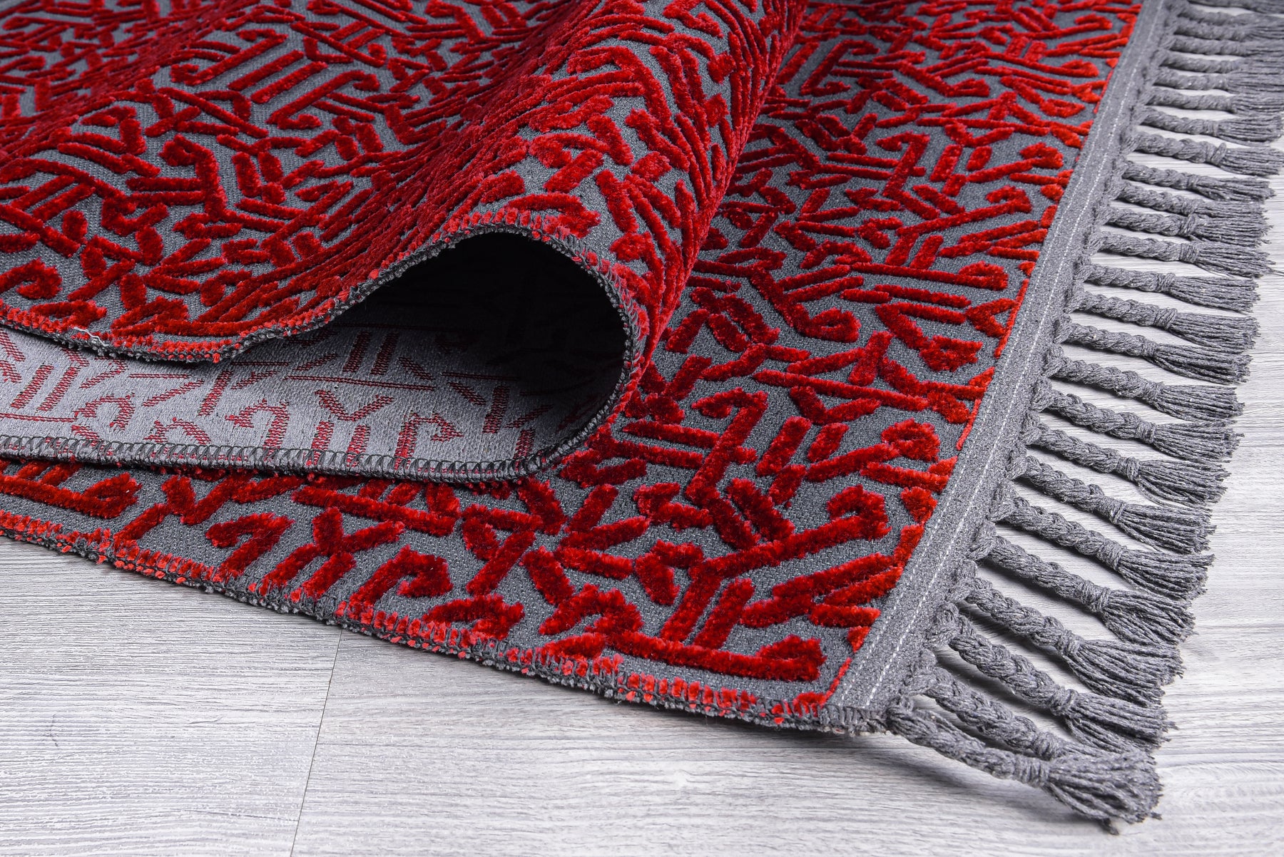 Pamuk ve Kadife tuşeli akrilik ipliklerden modern tezgahlarda üretilmiş ve el emeği özel saçaklarla süslenmiştir.