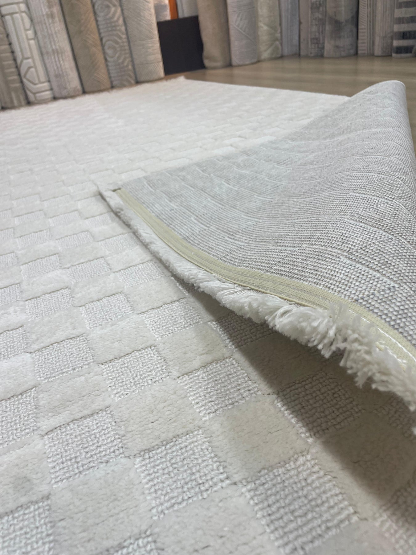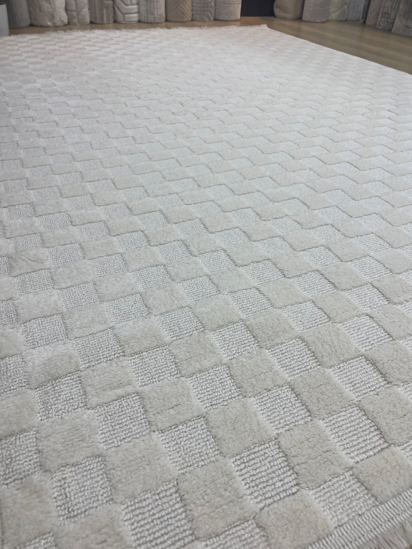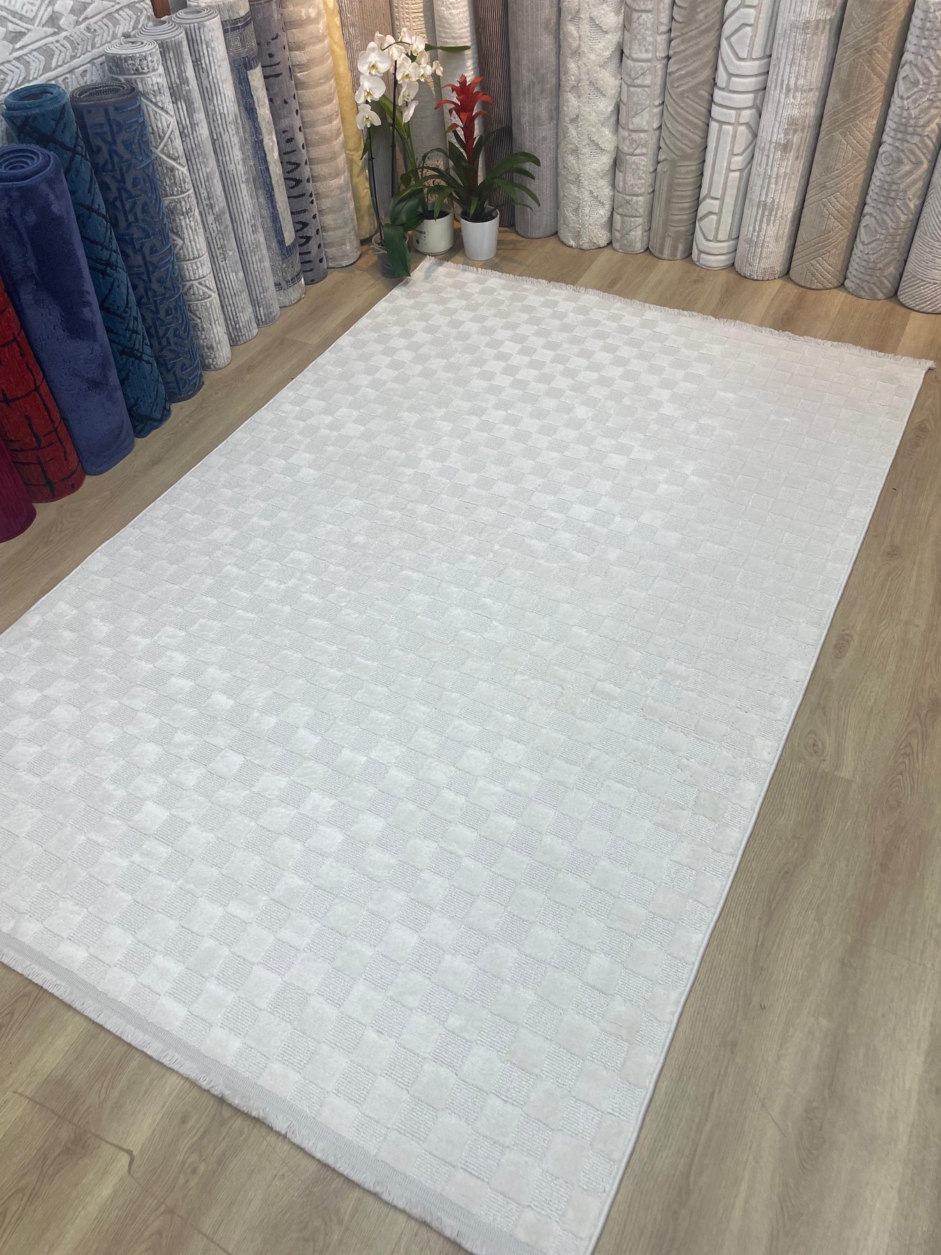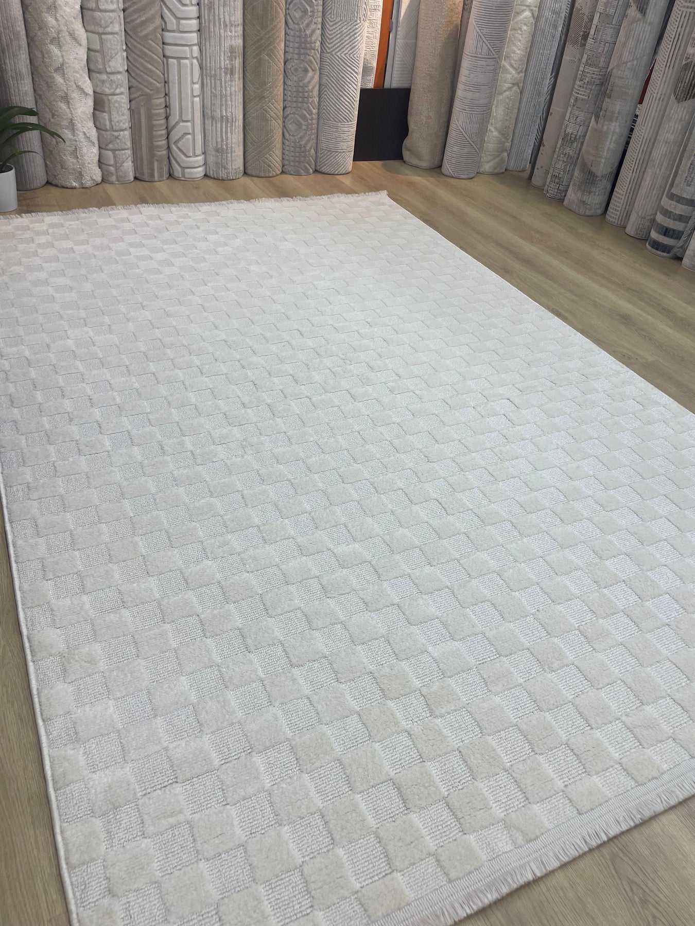 TRENDO 004 BEYAZ KARE DESENLİ DEKORATİF HALI✂️