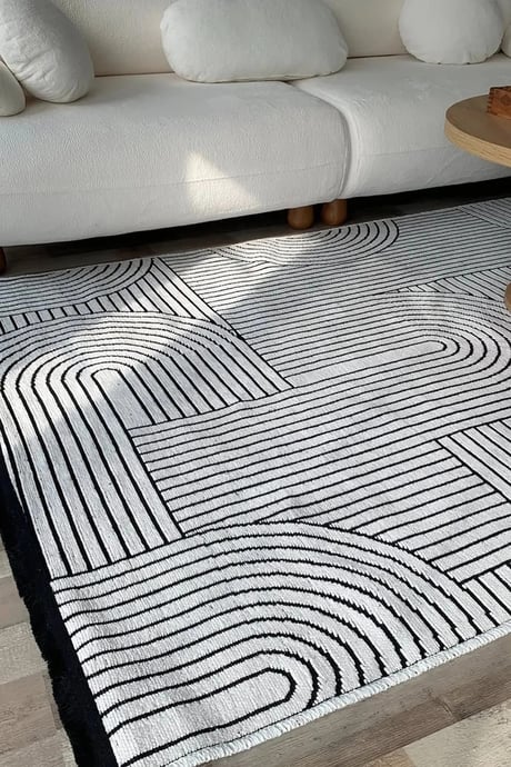 BOHEM DESEN YIKANABİLİR BEYAZ ŞÖNİL KİLİM