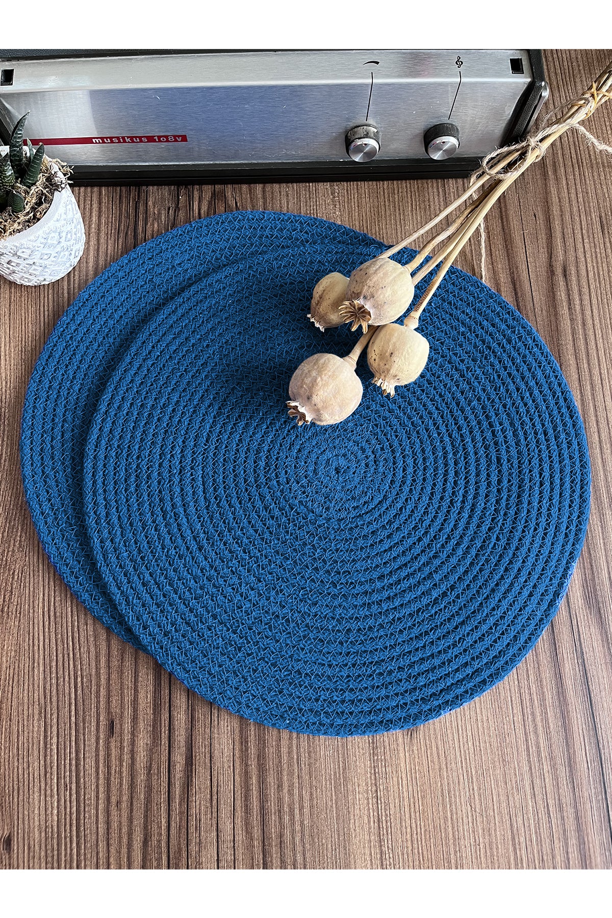 Koyu Mavi/Bordürlü Koyu Mavi Jüt Örme Hasır Supla