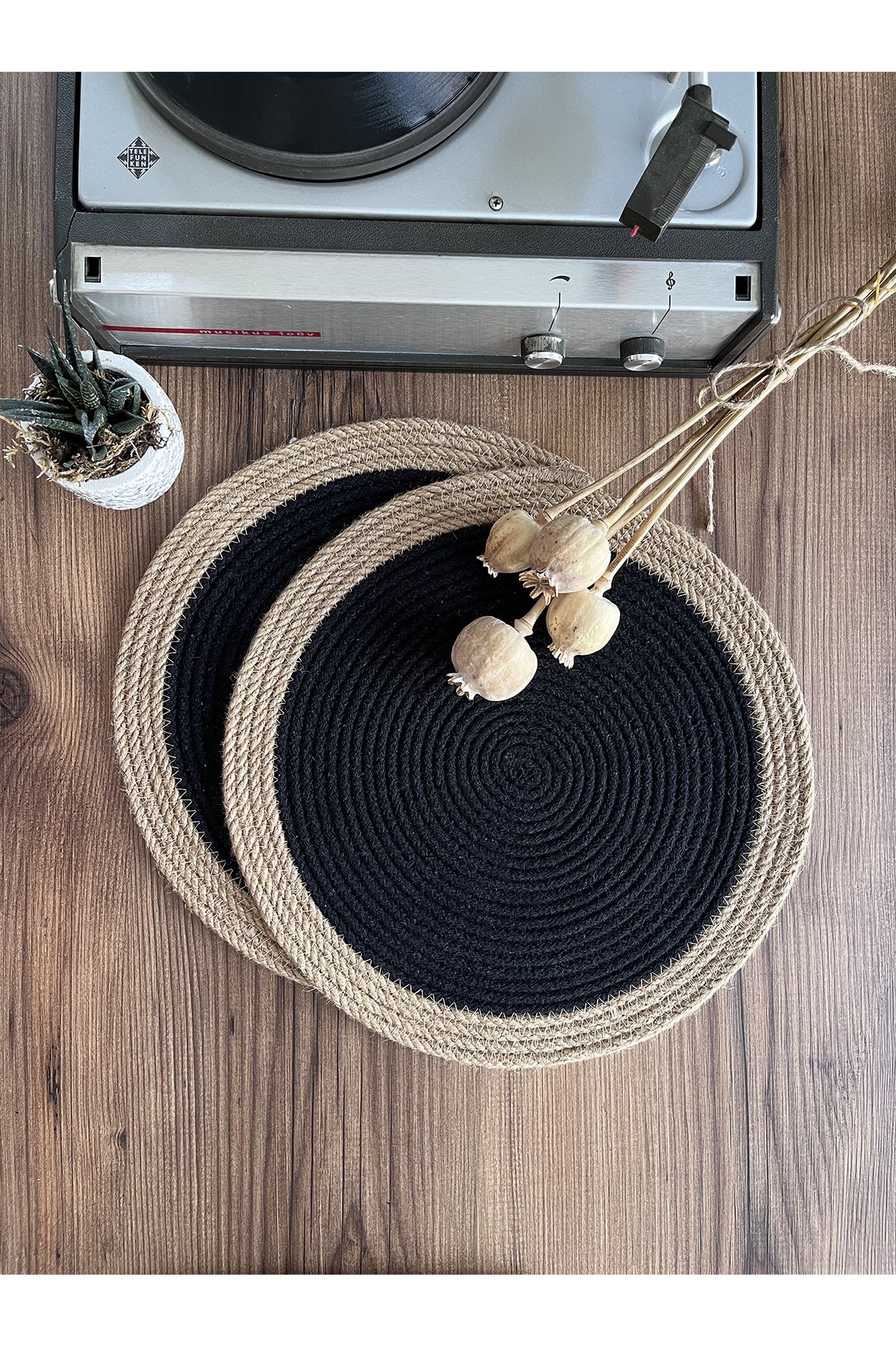 Siyah/Bordürlü Siyah Jüt Örme Hasır Supla